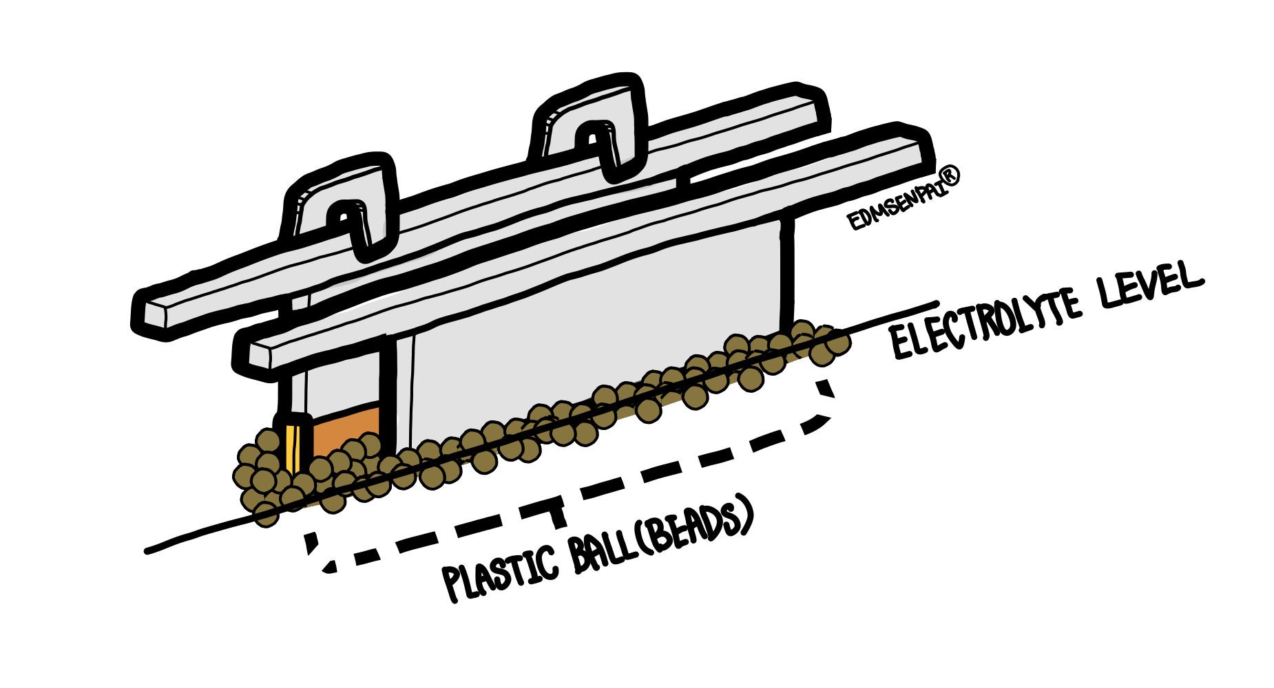 ② Plastic mist ball (bead): 전해액 위에 플라스틱 공 혹은 구슬들을 배치함으로써, Acid Mist가 대기 중으로 방출되는 것을 직접적으로 막아줍니다.