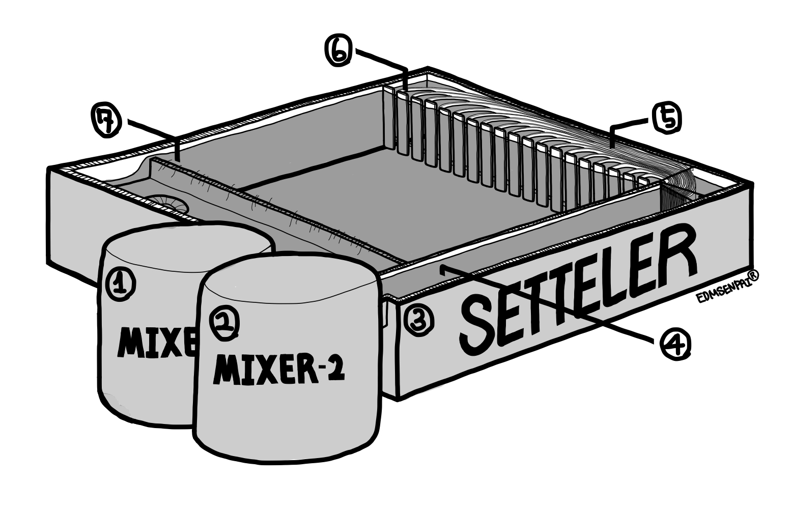 ˙Settler(③): 혼액의 상분리가 이루어지는 곳