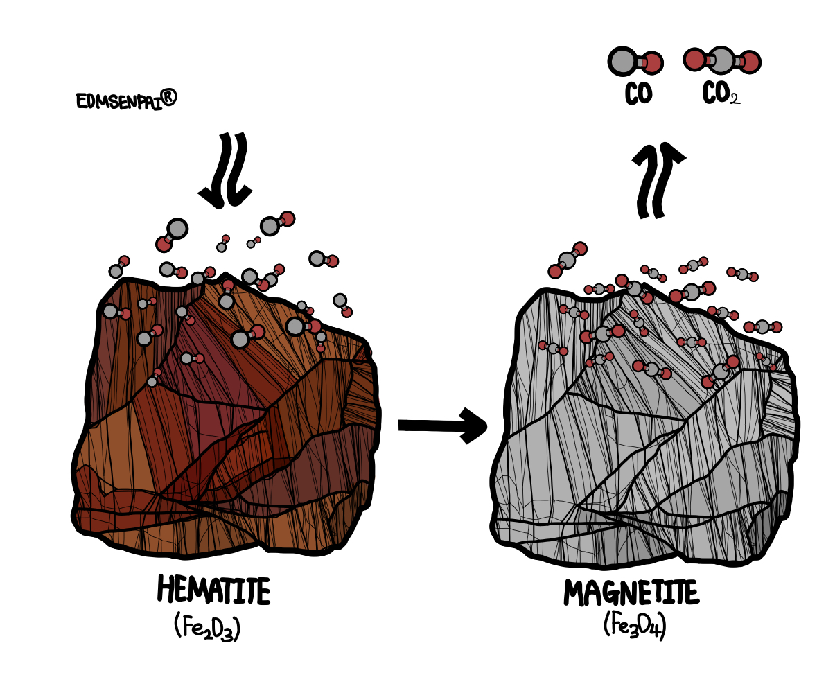 3Fe2O3(s) + CO(g) → 2Fe3O4(s) + CO2(g)